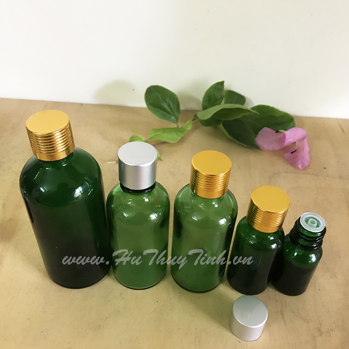 Chai thủy tinh xanh lá cây dung tích từ 10ml, 20ml, 30ml, 50ml đến 100ml nắp nhựa mạ vàng, đầu nhỏ giọt. Chuyên dụng làm chai đựng tinh dầu, chai đựng dầu thơm, mỹ phẩm, chai đựng dầu dừa, chai đựng mỹ phẩm cao cấp, chai đựng dung dịch tránh ánh sáng.
